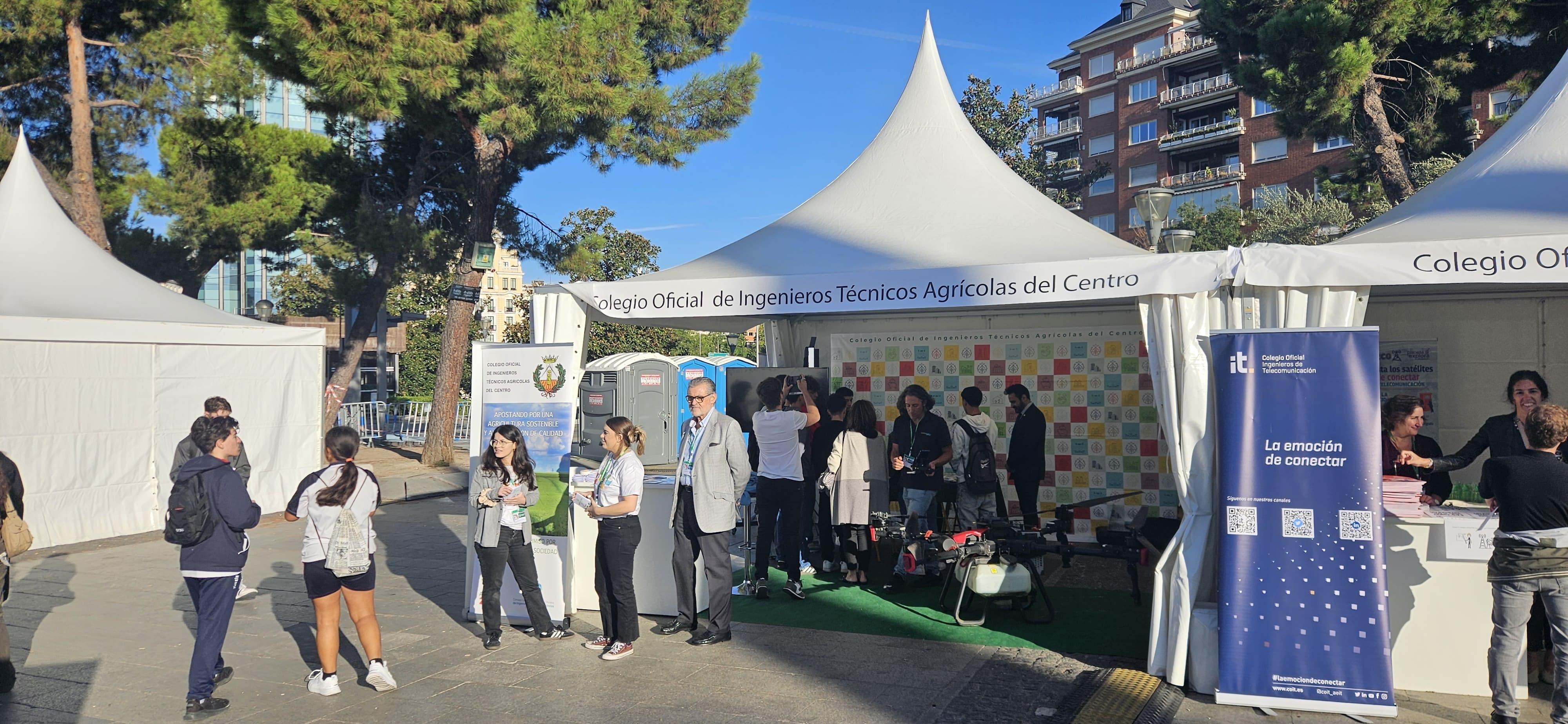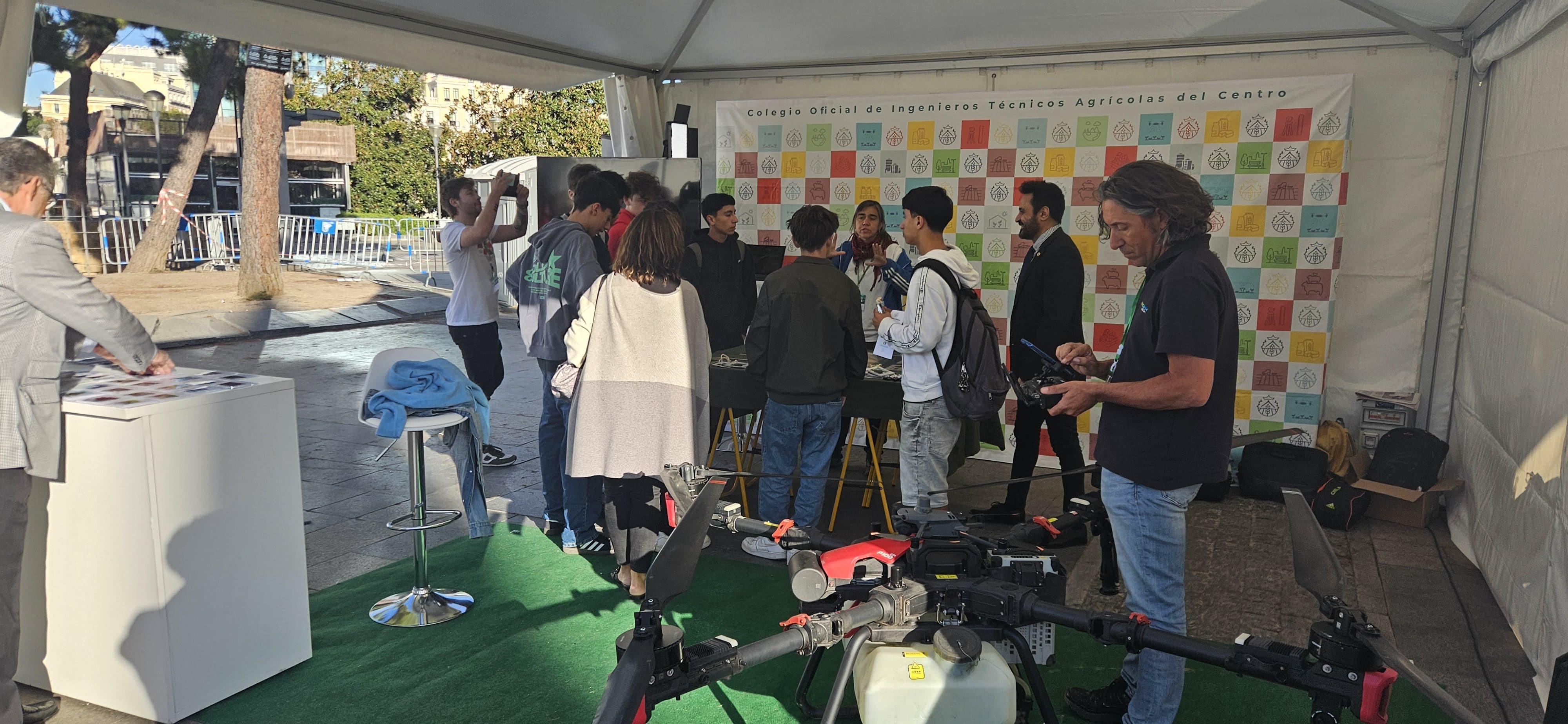 En la Carpa 8 se situaba el stand del Coita Centro, donde se llevaron a cabo varias actividades y talleres diseñados para mostrar lo que realmente significa estudiar y ejercer la profesión de la Ingeniería Agrícola. - Demostración: “Agricultura de precisión con IA: del dron al dato en 20 minutos” actividad con dron aplicador de productos fitosanitarios, simulación de vuelo, procesado de datos con IA en directo e interpretación final.