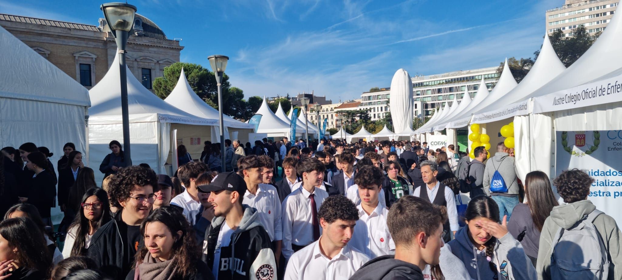 Ribón subrayó el papel de los colegios profesionales como garantía de calidad y ética, recordando que: “Los Colegios no son solo custodios de la calidad; son motores de prosperidad”. Asimismo, animó a los estudiantes a acercarse a los colegios: “Elegir carrera no es marcar una casilla; es elegir una forma de contribuir al bien común”. Durante la inauguración, agradeció además al Ayuntamiento de Madrid y a la Junta Municipal del Distrito de Salamanca su apoyo y colaboración, que hacen posible que la Plaza de Colón se convierta en la casa de esta celebración anual.