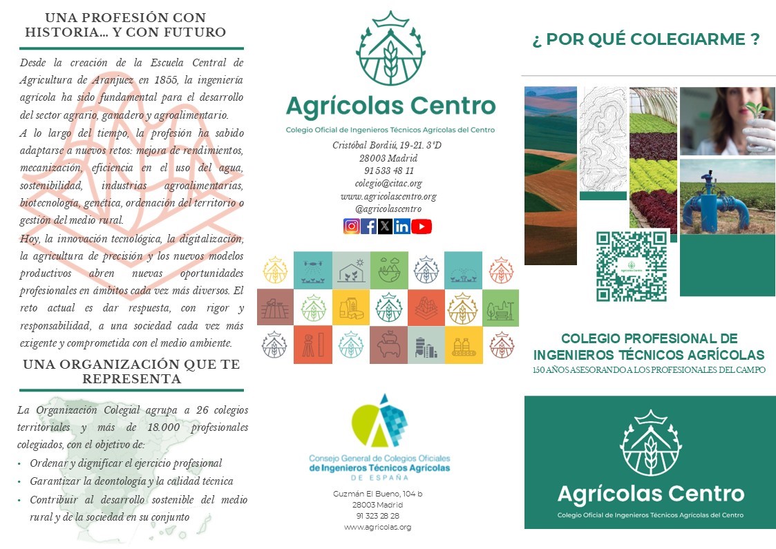 El próximo 9 de febrero a las 12:30 a 13:30 h, en el Salón de Actos del EDIFICIO AGRÍCOLAS de la ETSIAAB, se celebrará una jornada informativa organizada conjuntamente por el Colegio Oficial de Ingenieros Técnicos Agrícolas del Centro (CITAC), el Colegio Oficial de Ingenieros Agrónomos del Centro y Canarias (COIACC) y la ETSIAAB.