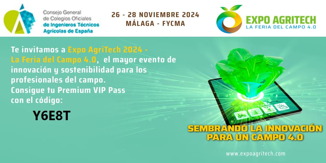 El Consejo de Ingenieros Técnicos Agrícolas colabora con Expo Agritech - La Feria del Campo 4.0 con motivo de un convenio firmado con NEBEXT, entidad organizadora. Y como colaboradores, el Consejo General de los Colegios Oficiales de Ingenieros Técnicos Agrícolas de España, dispone de invitaciones gratuitas para los colegiados: