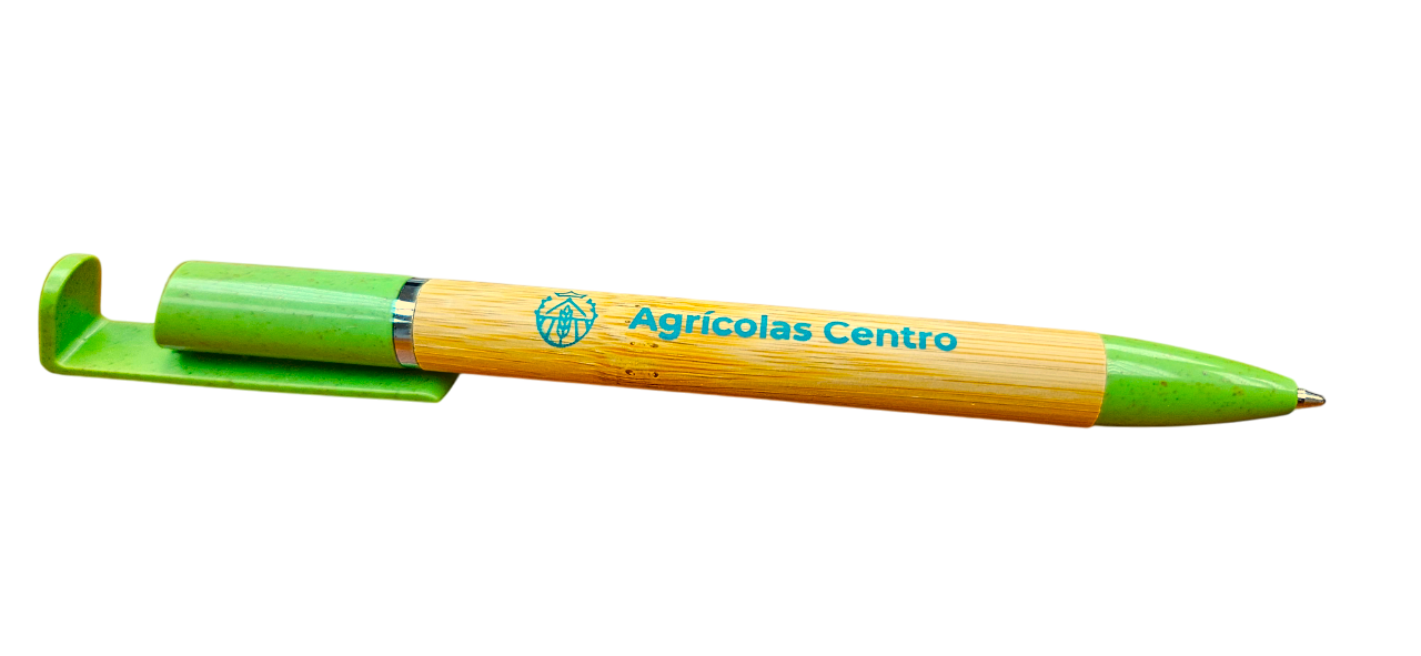 Bolígrafo con soporte fabricado en bambú y caña de trigo.